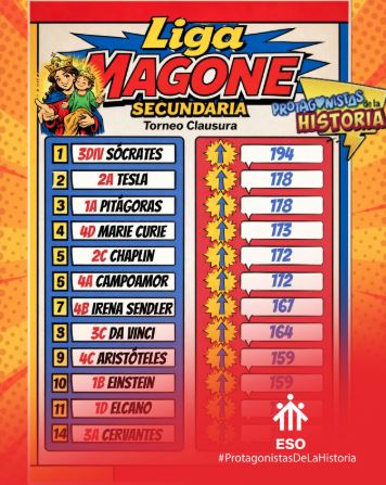 La sección de Secundaria ha dado comienzo al torneo clausura de la Liga Magone, una iniciativa educativa que propone al alumnado un reto común: sumar buenas acciones y vivir los valores del respeto, la solidaridad y la responsabilidad en su vida cotidiana. A lo largo de las próximas semanas, las clases irán acumulando puntos a través de gestos concretos que fomentan la convivencia positiva y el compromiso con los demás, demostrando que también se puede “competir” haciendo el bien. La Liga culminará el próximo 24 de mayo, coincidiendo con la festividad de María Auxiliadora, en una jornada especial que celebrará no solo los logros alcanzados, sino el crecimiento personal y grupal de todo el alumnado participante.